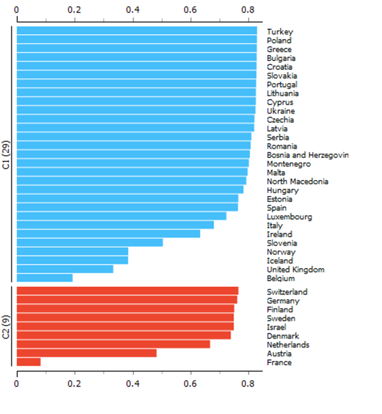 Una contrapposizione che vede i paesi del cluster 2 con valori di sei volte